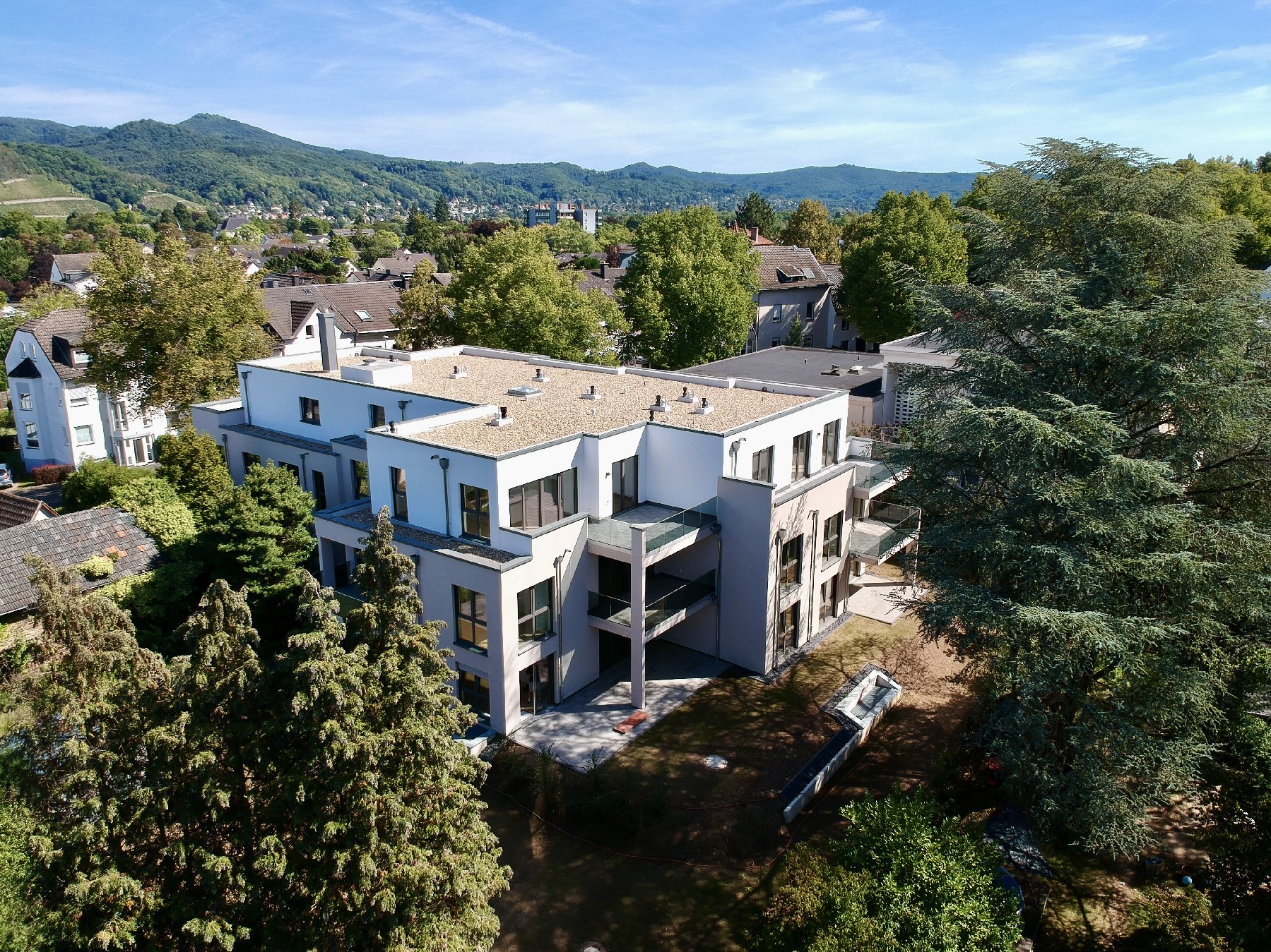 Das Gebäude entsteht in nachhaltiger Bauweise nach KfW 55-Standard und liegt auf einem nach Südwesten ausgerichteten Grundstück, das durch den alten Baumbestand der Nachbargrundstücke eine grüne, ruhige Umgebung schafft.
