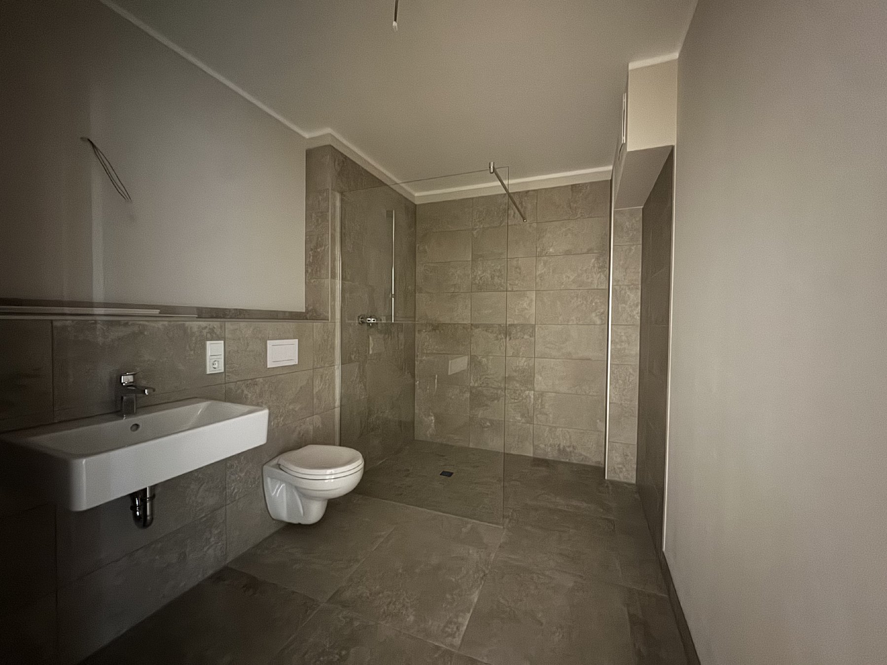 Die Bäder sind hochwertig ausgestattet mit bodengleichen Duschen, Badewannen und Waschtischen. Die Erdgeschosswohnungen verfügen über exklusive, großzügige Gartenanteile mit Blick ins Grüne.