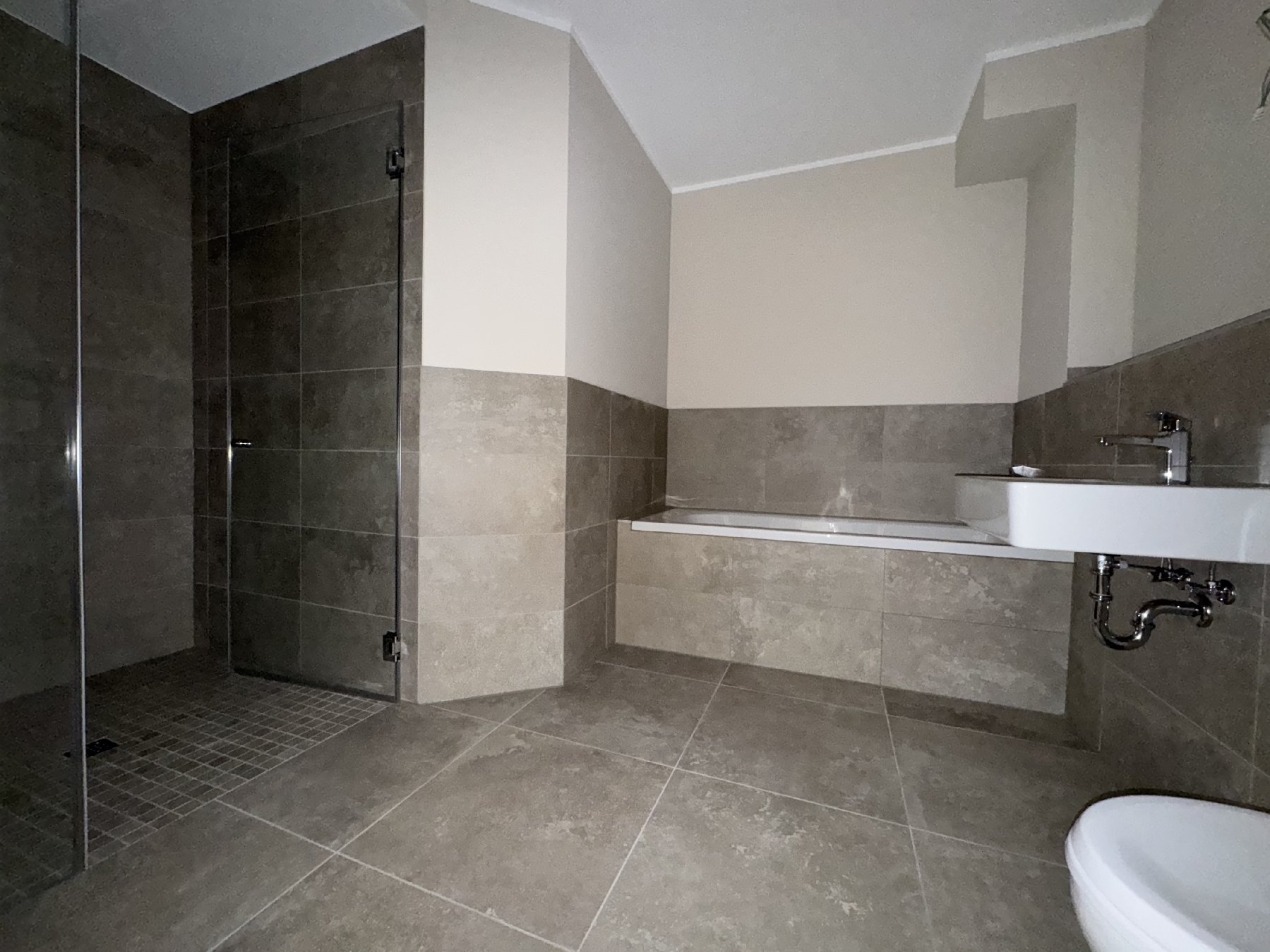 Die Bäder sind hochwertig ausgestattet mit bodengleichen Duschen, Badewannen und Waschtischen. Die Erdgeschosswohnungen verfügen über exklusive, großzügige Gartenanteile mit Blick ins Grüne.