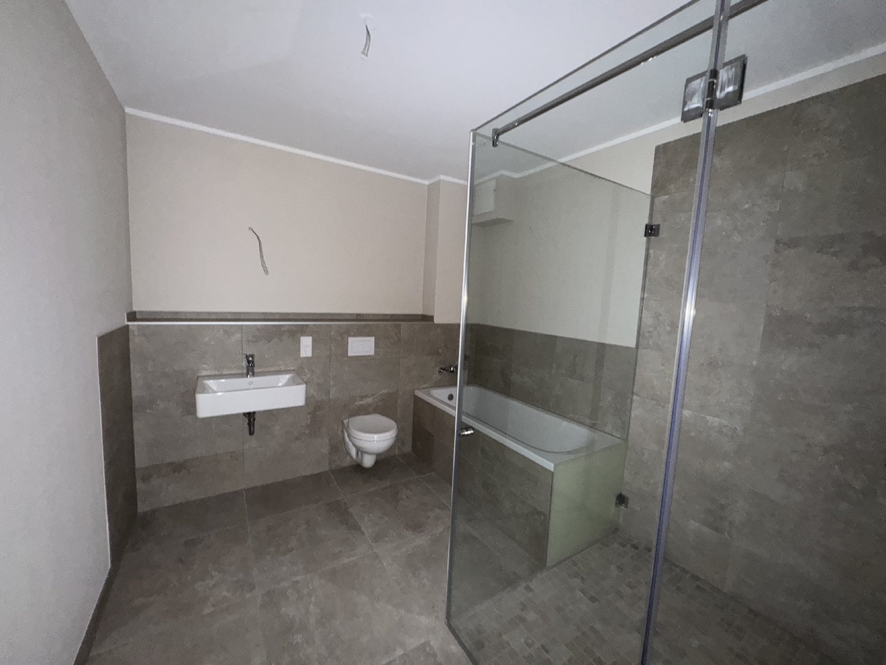 Die Bäder sind hochwertig ausgestattet mit bodengleichen Duschen, Badewannen und Waschtischen. Die Erdgeschosswohnungen verfügen über exklusive, großzügige Gartenanteile mit Blick ins Grüne.